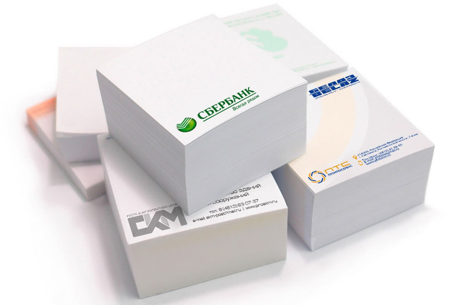 На лицевой стороне фирменных блоков наносится логотип, контакты и название компании, а оборотная остается чистой, чтобы вести записи. Такая продукция является эффективным рекламным средством, находится на самых видных местах и несет информационную функцию, привлекая потенциальных партнеров и потребителей. Часто заказывают блок кубарика, чтобы дарить на деловых семинарах, презентациях и праздниках.